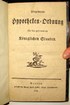 Allgemeine Hypotheken-Ordnung für die gesammten königlichen Staaten. BEIGEBUNDEN / bound with: Instruction für die Ober- und Untergerichte zur Ausführung der Königlichen Verordnung vom 16ten Juni d. J. [1820] wegen Einrichtung des Hypotheken-Wesens in dem mit den Preußischen Staaten vereinigten Herzogthum Sachsen. BEIGEBUNDEN / bound with: Anhang zur Instruktion für die Gerichte wegen Bearbeitung des Hypothekenwesens in dem mit den Preußischen Staaten vereinigten Herzogthum Sachsen. De dato Berlin, den 12ten August 1820. Enthaltend die seit der Publikation der Hypothekenordnug von 1783. erfolgten Erklärungen, Ergänzungen und Abänderungen derselben verkürzt gesammelt. Mit Holzschnittornamenten. Berlin: George Jacob Decker, Königl. Hofbuchdrucker. 1784 und 1820. [4], 124, 37, [3 weiße],15, [1 weiße] Seiten. Handgefertigter Pappeinband der Zeit, bezogen mit schwarzem Kleisterpapier, schwarz geprägtes Rückenschild, Octavo, 20,5 x 12,5 cm. (Einband im Rückenbereich berieben, Gelenke bestoßen, Vorsätze erneuert, im Ganzen gut erhalten. In dieser Zusammenstellung selten.) Die "Allgemeine Hypothekenordnung" erschien auch im selben Jahr mit der Ortsangabe "Königsberg: Hartung". Behandelt werden die Form und Einrichtung der Hypotheken-Bücher, die Verwaltung des Hypotheken-Wesens, die Verfahren in Hypotheken-Sachen, die Eigentumseintragung, Cessionen, Verpfändung, Subinscription und Arrest, Löschung, Protestationen, Hypotheken-Scheine, das Hypotheken-Verfahren bei den Untergerichten, die Anlegung neuer Hypotheken-Bücher. Die 1820 erschienenen Ergänzungen berücksichtigen die Edikten-Sammlung bzw. das Novum Corpus Constitutionum Prussico-Brandenburgensium, das Neue Archiv der Preußischen Gesetzgebung, die Gesetzsammlung, Stengels Beiträge zur Kenntnis der Justiz-Verfassung, Mathis' juristische Monatsschrift, von Kamptz' Jahrbücher und Hoffmanns Repertorium. - First edition. Contemporary boards. Good. - Erste Ausgaben. "Die Allgemeine Hypotheken-Ordnung für die gesamten Königlichen Staaten war die Rechtsgrundlage für die Anlage und Führung der Grundbücher im Königreich Preußen. Sie wurde am 20. Dezember 1783 erlassen und fand mit der preußischen Grundbuchordnung vom 5. Mai 1872 ihre Erledigung. Zugrunde lag der Grundsatz: Quod non est in actis, non est in mundo. ('Was nicht in den Akten ist, existiert nicht in der Welt')." (Wikipedia). - First edition. Contemporary boards. Good. - Erste Ausgabe. - RFM - Weitere Bilder auf Anfrage oder auf unserer Homepage.