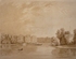 Panorama Wallgraben mit klassizistischem Bau (Delitzsch). Tuschpinsel in Braun über Bleistift. Auf festem Zeichenpapier. 28,2 x 36 cm. Papier: 31,5 x 48,8. Reizvolle, großformatige Arbeit mit hohem Himmel und viel Spiegelung auf der sich zum Betrachter hin öffnenden Wasserfläche. Boote beleben zudem den mit alten Bäumen gesäumten Wasserlauf. Möglicherweise handelt es sich dabei um den Wallgraben im sächsischen Delitzsch. - Im Rand mit schwachen Griffknicken. Wenige Flecken, teils Atelierspuren.