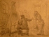 Atelierdarstellung. Bleistiftzeichnung. Mongrammiert und datiert: "RT [oder RH] 1872". 21,1 x 27,9 cm. Die im Zentrum genau ausgearbeitete, ansonsten schwungvoll gezeichnete Darstellung zeigt den vor einer Staffelei sitzenden Künstler bei der Arbeit, der einem hinter ihm stehenden Besucher oder Modell einige Münzen reicht. Im Hintergrund sind ein fertiges Frauenbildnis sowie ein Ofen und Lebensmittel zu erkennen. - Versandkosten auf Anfrage.