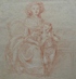 Geschwisterpaar an ein Möbel gelehnt. Rötelzeichnung mit Weißhöhungen auf gräulich getöntem Papier. Vermutlich Frankreich, 18. Jahrhundert. 24,6 x 23,2 cm. Zwei minimale Wurmgänge am linken Bildrand. - Versandkosten auf Anfrage.