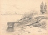 Lenggries - Flusslandschaft mit Ruderboot. Bleistiftzeichnung auf chamoisfarbenem Zeichenkarton, 1881. Rechts unten datiert: "L[enggries]. 12. Sept. [18]81. Rückseitig alt bezeichnet "M.Stockes". 28,3 x 20,5 cm. Fein ausgeführte Landschaftsstudie mit Blick auf das Ufer der Isar, im Hintergrund Lenggries mit der Pfarrkirche St. Jacob vor dem Brauneck. - Insgesamt minimal gebräunt, sonst von guter Erhaltung.