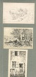 3 Studien. 3 Orig.-Studien (Bleistift- u. Tuschezeichnungen) auf Papier, auf Karton montiert. 11 x 15, 5 cm u . 15, 5 x 10 cm. Etwas gebräunt, sonst gut erhalten, 2 verso mit Skizze. 3 Studien (Bäuerliche Szene, Waldlandschaft, Bauernhaus), davon 1 signiert "J. Linke". Auf dem Karton von alter Hand bezeichnet "Münchner Maler".