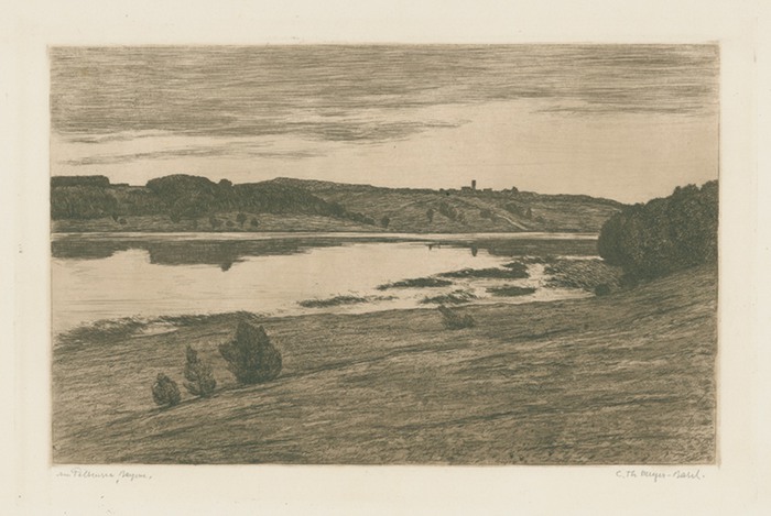 Am Pilsensee, Bayern. _. Radierung und Vernis-mou, in Dunkelbraun, auf Papier mit Wasserzeichen: PM Fabriano, signiert und bezeichnet. 20:31,5 cm. Sehr guter Abdruck, vollrandig.