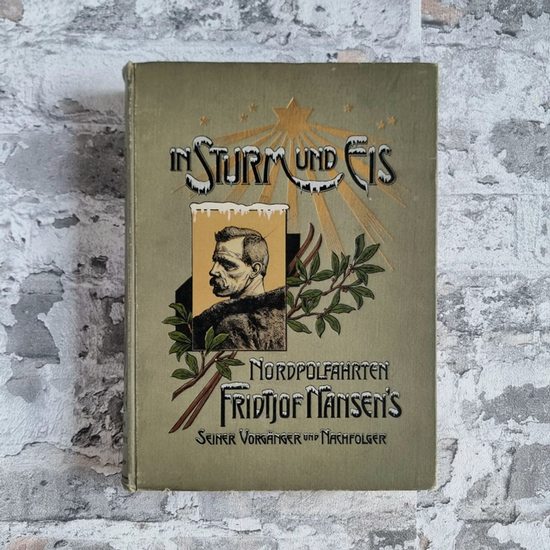 In Sturm und Eis. Nordpolfahrten Fridtjof Nansens seiner Vorgänger und Nachfolger. Nach dem norwegischen Original-Werk "Fridtjof Nansen" von W.C. Drögger und N. Rolfsen und anderen Quellen bearbeitet von Eugen von Enzberg. Mit Originalzeichnungen von Chr. Krogh, Otto Sinding, E. Werenskiold und Photographischen Aufnahemen in Grönland von Dr. Erich von Drygalski. Berlin, Schreiter, (1902). Gr. 8° (25,5 x 18,5 cm). 4 Bl., 483 S. mit zahlreichen Illustrationen. Original Ganzleinenband mit farbiger Einbandillustration. Einband mit geringfügigen Gebrauchsspuren. Stellenweise etwas stock- bzw. fingerfleckig. Sonst sehr gut erhaltenes Exemplar.