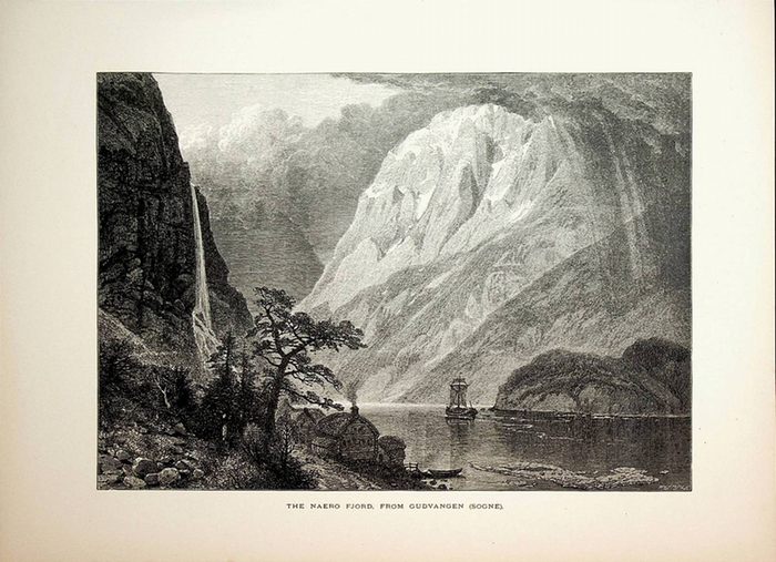 Gudvangen, N?r?yfjord, Aurland in Sogn og Fjordane Norway, view ca. 1875 ca. 1875. original Xylograph, Format ca. 16,5 x 23 cm. Antique Print, antike Grafik.