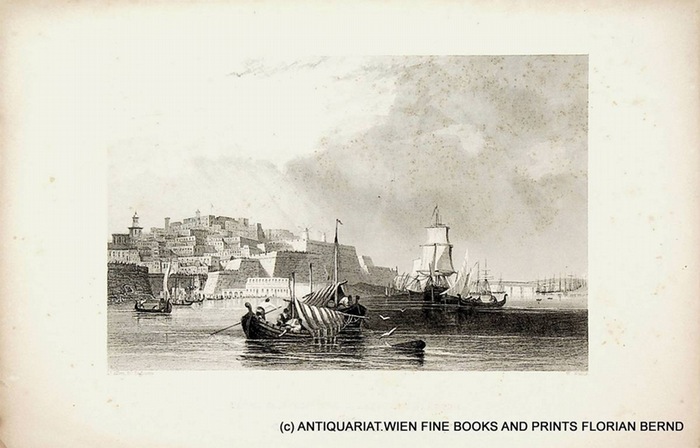 LA VALLETTA, Malta view ca. 1850 c. 1850. original steel engraving, by W. Wallis alter Allen, image format ca.12,5 x 19 cm. Antique Print, antique print, antike Grafik.