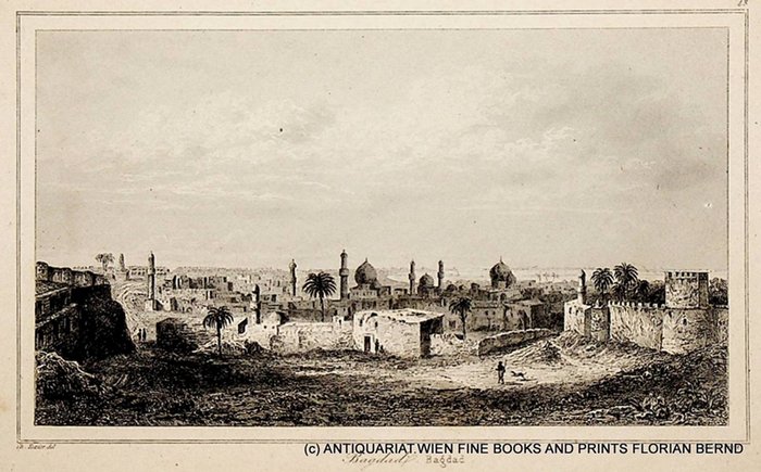BAGDAD, Iraq view c. 1840 c. 1840. original steel engraving by Ch. Texier, image format c. 9,5 x 16,5 cm. Antique Print, antique print, antike Grafik.