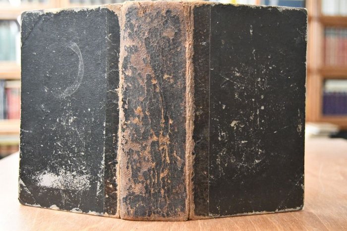 Grundbegriffe des neuen Testaments in einem neuen Jahrgang von Predigten über die Sonn- Fest- und Feyertägliche Episteln, samt einem Anhang einiger andern von verschiedener Materie, von einer Wahrheit-liebenden Gesellschaft zum Drucke befördert. o.O., o.V., 1777. 2 Bll., 412, 606 S., 2 Bll. 18 x 11 cm, späteres Halbleder (wohl von 1923). Einband berieben, bestoßen und vorderer Falz geöffnet und Einband vom Rücken gelöst. Schnitt fleckig. Innen durchgehend feuchtigkeitsrandig und fleckig. Handschriftliche Besitzervermerke (Nathanael Scheytt 1923, Karoline Handel in Mezingen) auf fliegendem Vorsatz. Titel und Vorwort gelöst. Mälzer Nr. 1863.