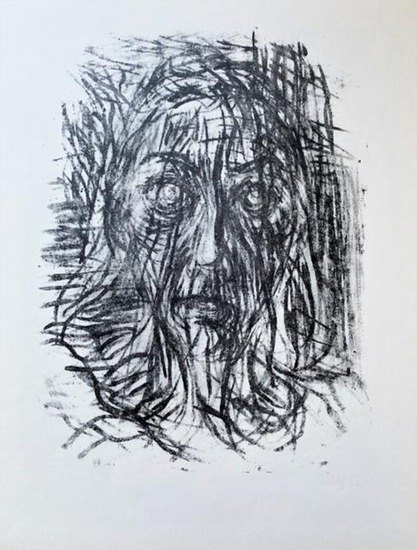 "Wahnsinn". Original Lithographie. Signiert. 1966 Aachen. Blattgrösse ca. 50 x 37 cm. Vom Künstler unter der Darstellung handsigniert und datiert. - Aus: " Gegena USA Krieg in Vietnam". 5. Druck der Kabinettpresse (Berlin, 1966). - Max Uhlig (*1937 Dresden, lebt und arbeitet in Dresden-Niederpoyritz). Deutscher Maler und Grafiker, namhafter Vertreter der Dresdner Kunst in der DDR. 1955-60 Studium an der Hochschule für Bildende Künste Dresden bei Hans Theo Richter und Max Schwimmer. 1961-63 Meisterschüler an der Deutschen Akademie der Künste zu Berlin bei Hans Theo Richter. Langjährige Professor für Malerei an der Hochschule für Bildende Künste in Dresden. Mitglied der Sächsischen Akademie der Künste. 1987 Käthe-Kollwitz-Preis der Akademie der Künste der DDR in Berlin, 1998 Hans-Theo-Richter-Preis und Sächsischer Verdienstorden, 2003 Kunstpreis der Landeshauptstadt Dresden. Oub.