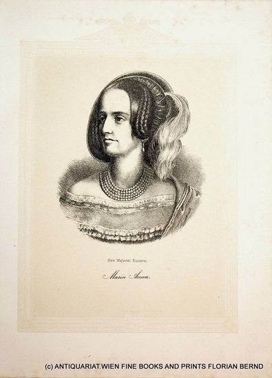 ?STERREICH, Maria Anna Kaiserin von ?sterreich von 1835-1848 (1803-1884) geb. Prinzessin von Savoyen Wien?, ca. 1875. Portrait, original get?nte Lithographie, Blattformat ca. 27,5 x 20 cm, etwas fleckig. Antique Print c. 1875 / originale Grafik ca. 1875.