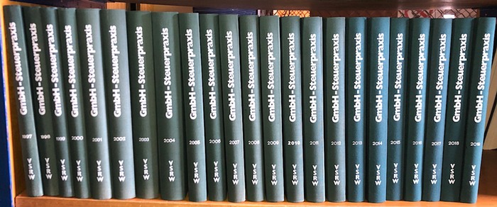 GmbH-Steuerpraxis. Steuern - Vergütung - Haftung. 25 Bände. Bonn, VSRW, 1997-2021. Originalgebunden (Jg. 2020 u. 2021 ungebunden, Einbanddecke für 2020 vorhanden). Jg. 2020- u. 2021 alle Hefte gelocht u. mit Adreßaufkleber. - Genauere Zustandsbeschreibung u. Versandkosten auf Anfrage.