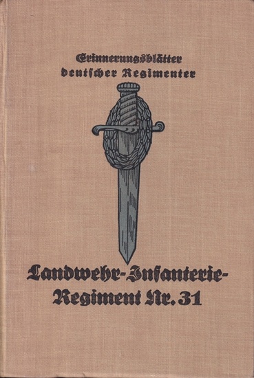 Geschichte des Landwehr-Infanterie-Regiments Nr. 31 im Weltkriege. Bearbeitet auf Grund der amtlichen Kriegstagebücher auf Veranlassung des Reichsarchivs. Oldenburg i.O. Gerhard Stalling, 1928. 544 S. Mit zahlr. Fototaf., 1 Tab. u. Buchschmuck von Carl-Hans Lüthje sowie 3 gefalt. Ktn. als Beilage. (= Erinnerungsblätter deutscher Regimenter. Truppenteile des ehemaligen preußischen Kontingents, Bd. 238). Gr.-8vo. 24 cm. OLn. Schilderungen der Kriegsereignisse im Osten (Ostpreußen, Polen, Rußland) u. der Kämpfe im letzten Kriegsjahr in Belgien u. Frankreich; über Gaskampf u. Gasschutz, Nachrichtenwesen, Verpflegungswesen, Sanitätswesen u.a. Mit Verlustliste (mehr als 1400 Gefallene u. Vermißte). - Leicht angestaubt, kaum bestoßen. Gutes Exemplar.