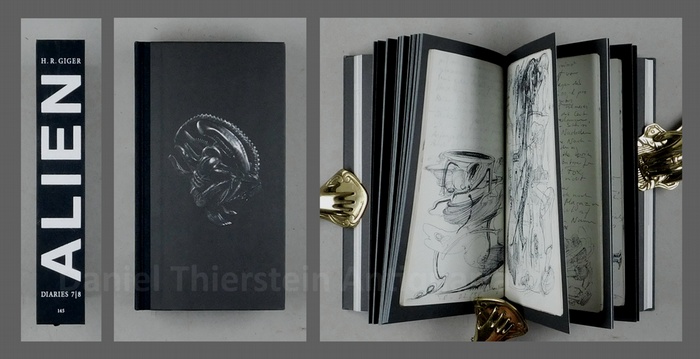 Alien. Diaries 7/8. Zürich, Edition Patrick Frey., 2013. 24x13,5 cm. 663 S. Mit vielen teils farbigen Abbildungen. Originalhalbleinwand. Erste Auflage. - "Während der Produktion von Alien füllte H.R. Giger zwei Tagebücher mit Skizzen, Notizen und Kommentaren. Tagebuch Nr. 7 umfasst den Zeitraum vom 23. Februar bis 28. Juni 1978. Tagebuch Nr. 8 den Zeitraum 1. August 1978 bis Februar 1979." "During the production of Alien, H.R.Giger kept two diaries with sketches, notes an commentns.".