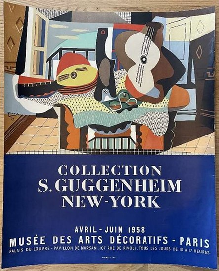 Collection Guggenheim New York. Musee Des Arts Decoratif, Paris. Plakat zur Ausstellung. Original-Farblithographie. 64 x 53 cm. Auf Leinen aufgezogen. Paris: Maeght. 1958. auf Leinen aufgezogen, etwas berieben und mit kleinen Randläsuren, insgesamt aber noch gutes Exemplar.