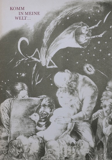 Komm in meine Welt. Jiddische Lyrik von Aron Wergelis. Leipzig, Hochschule für Grafik und Buchkunst, 1979. Kartoniert, 63 Seiten. Quartformat (ca. 27,2 x 18,7 cm). Einband mit ganz leichten Gebrauchsspuren, sonst tadellos erhalten. Insgesamt guter bis sehr guter Zustand. 1. Aufl. Herausgegeben von Werner Günzerodt. Mit Originallithografien von Andreas Weißgerber.