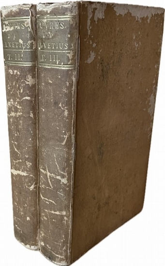 Oeuvres complettes de M. Helvétius. Nouvelle Edition, corrigée & augmentée sur les Manuscrits de l'Auteur, avec sa Vie & son Portrait. Tome second: De l'esprit. Tome troisième: De l'homme, de ses facultés intellectuelles et de son éducation. Ouvrage Posthume de M. Helvétius. London. 1781. 448, 384 S. Einbände etwas berieben und mit kl. Läsuren, Rücken nachgedunkelt, sonst gute Exemplare 2 Bände.