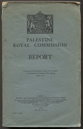 Palestine royal commission report / presented by the Secretary of State for the Colonies to Parliament by command of His Majesty, July, 1937. London, His Majesty`s Stationery Office, 1937. 404 Seiten, 25 x 16 cm, Broschur. Äußere Gebrauchsspuren. Rücken und hinterer Kartenteil fehlt. Karten als Ausdrucke beigefügt. Minimal stockfleckig.