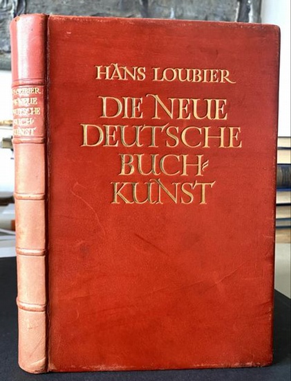 Die neue deutsche Buchkunst. Mit 157 teils farbigen Abbildungen. Stuttgart, Kreis, 1921. Gr.-8°. 127 Seiten und Tafelanhang. Orig.-Leder mit Rücken- und Deckeltitel und Kopfgoldschnitt (leicht fleckig und etwas berieben). Eins von 100 nummerierten Exemplaren in Ganzleder. - Reich illustriertes Werk über die Buchkunst zu Beginn des Jahrhunderts, über die engl. Vorläufer, die Buchkünstler, neue Druckschriften, Illustratoren und Bucheinbände. Schöner Druck in Rot und Schwarz mit großen Initialen in Rot und Schwarz. A7-296 . Bei Bestellungen auf Rechnung bleibt Vorkasse vorbehalten. Bestellungen erfolgen ohne Gewähr und gelten erst nach Bestätigung der Verfügbarkeit. Payment in advance is reserved for orders on account. Orders are made without guarantee and are only valid after availability has been confirmed. The shipping costs to non-EU countries may vary depending on the weight. We also offer cheaper shipping options for books up to 1000g.