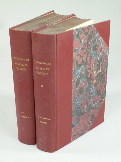 Allgemeines Lexikon der bildenden Künstler von der Antike bis zur Gegenwart. Unter Mitwirkung von 300 Fachgelehrten des in- und Auslandes. 37 Bände. Später Seemann-Verlag. Leipzig, Engelmann, 1907-50. . Schöne Halbleinenbände m. marmorierten Deckeln. Gr.-8vo. Ex Libris, sonst gut.